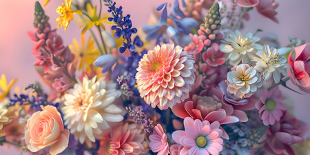 Bouquet of flowers in pastel colors background - Ai Generated