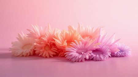 A stunning display of vibrant flowers in shades of pink, purple, and blue against a soft gradient background. Ideal for elegant design projects.