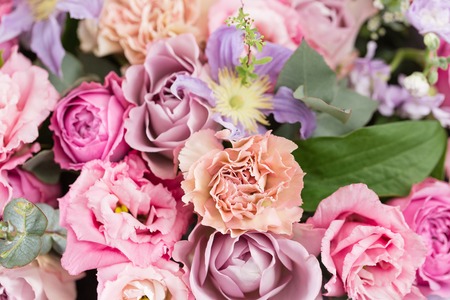 Flowers composition in vintage color tone. Floral texture made of pink and white flower.
