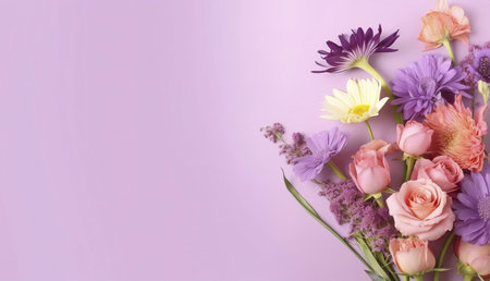 a beautifully crafted bouquet of flowers, strategically leaving ample copy space to serve as an inviting canvas for personalized greetings or well-wishes