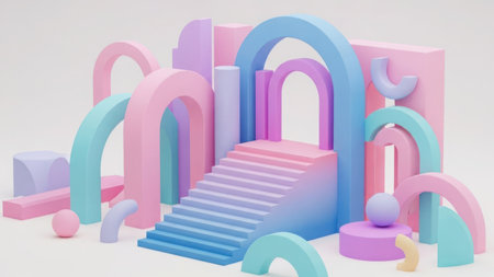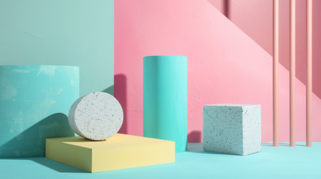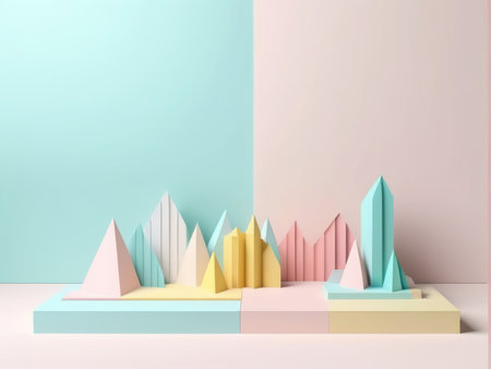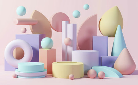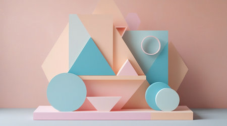 Minimalist geometrical abstract background, pastel colors, 3D render