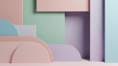 Minimalist composition featuring pastel colored geometric shapes forming an abstract background.