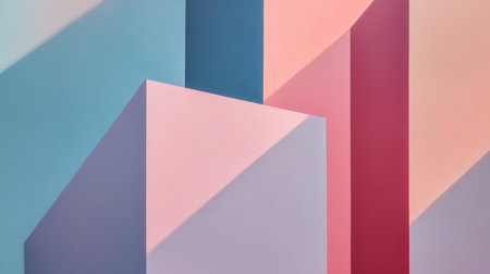 A flat geometric abstract background with soft pastel colors and sharp edges. Clear details and vibrant colors...