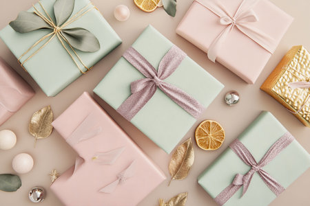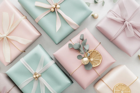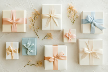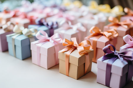Charming pastel gift boxes with lovely ribbons add a delightful touch to any special occasion.