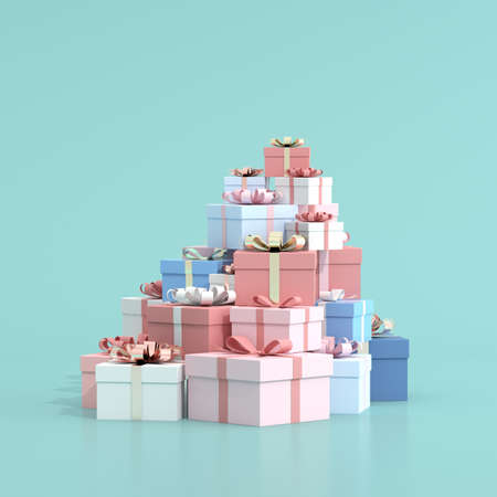 3d Rendering concept of online shopping, marketing, e-commerce banner. A lot of gift boxes in pastel theme for commercial background. 3d render. 3D illustration.