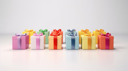 A lively composition of colorful gift boxes adorned with ribbons, set against a soft, pastel background. Perfect for celebrations, events, and festive occasions.