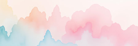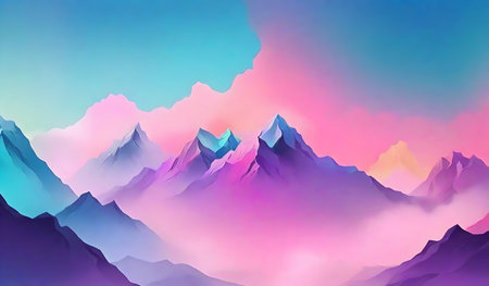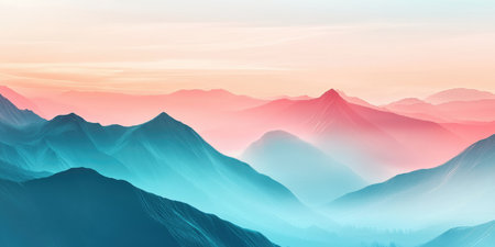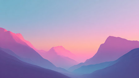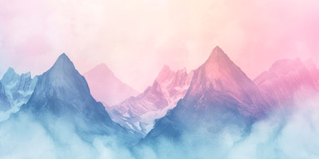 A serene and tranquil mountain landscape featuring soft pastel colors. Ideal for backgrounds or designs that evoke calmness and natural beauty.