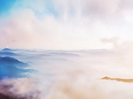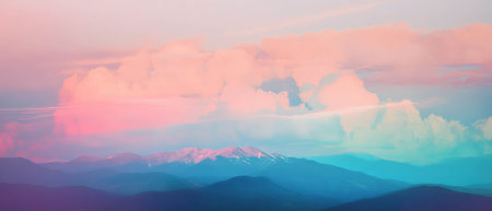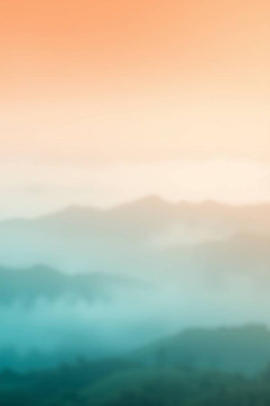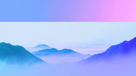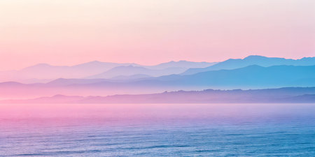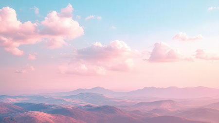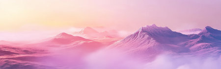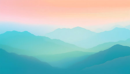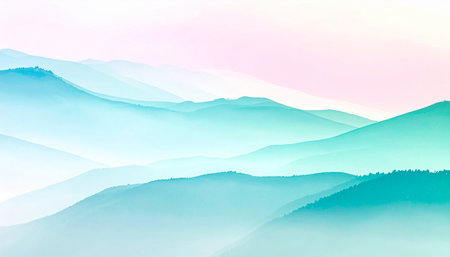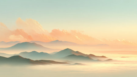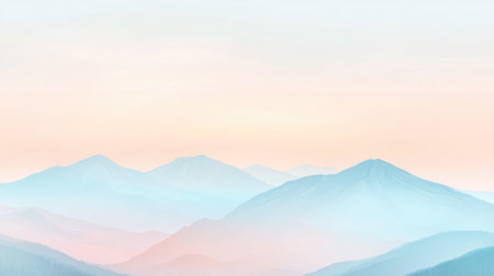 This stunning landscape features a gentle gradient of pastel colors over a misty mountain range, evoking tranquility and serenity in a breathtaking natural scene.