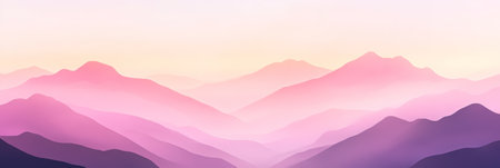 A tranquil mountain landscape at dawn featuring soft pink and purple gradients illuminating the serene hills and valleys, ideal for nature-themed projects.