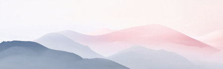 A serene and tranquil landscape featuring soft rolling hills under a calm sky at dusk. The gentle gradients and atmospheric mist create a peaceful and inviting scene.