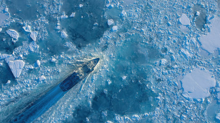 An icebreaker ship expertly cuts through frozen seas, demonstrating human innovation and the thrill of exploration in polar regions.