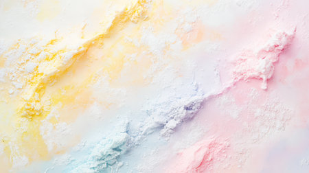 A vibrant arrangement of pastel powdered pigments showcases a blend of colors including soft yellows pinks and blues on a textured surface.