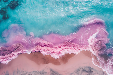 Digital artwork of pink and blue sand beach surrounded, high quality, high resolution