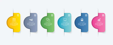 6 data infographics tab paper thin line index template. Vector illustration abstract background. Can be used for workflow layout, business step, banner, web design