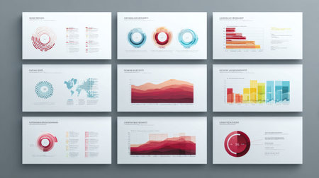 Bright and engaging data visualization infographic featuring various graphs, charts, and statistics. Perfect for business presentations and analytical reports.
