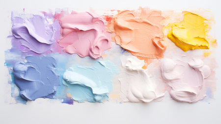 A vibrant and soft color palette featuring blended paints ideal for art projects. Perfect for showcasing creativity and artistic expression in various mediums.