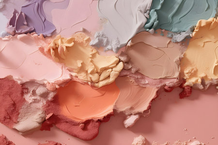 Texture from a mixture of makeup cosmetics - skin palette, cc cream, powder. Gentle pink and cream colors, Generative AI illustration.