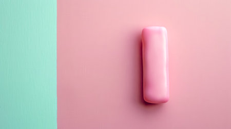 Pink bar of soap lying on pink and green background