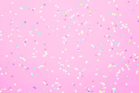 Colored confetti scattered on pink pastel paper