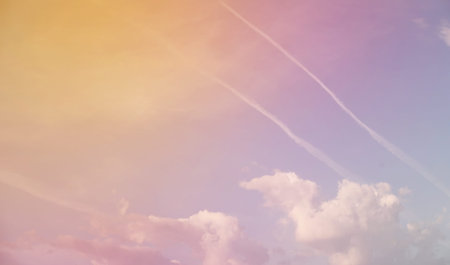 beauty sweet pastel soft yellow pink with fluffy clouds on sky. multi color rainbow image. abstract fantasy growing light