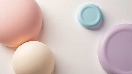 Surface showing pastel colored oval plates stacked and overlapping abstractly keywords: pastel, plates, oval,...