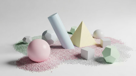 3d rendering of geometric shapes in pastel colors on white background