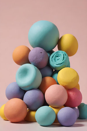 Colorful molded shapes of soft creations on a flat surface showcase artistic play