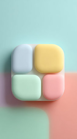 Four colorful square blocks arranged on a pastel background, creating a visually appealing composition.