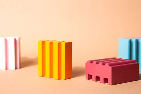 Bright, colorful geometric shapes podium for product display. Multicolored architecture of glossy abstract shapes on a pastel background. background for presentation