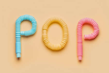 Composition with Different colorful Pop Tubes on beige background