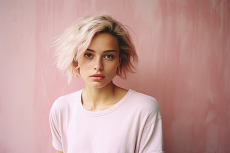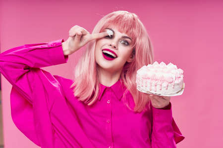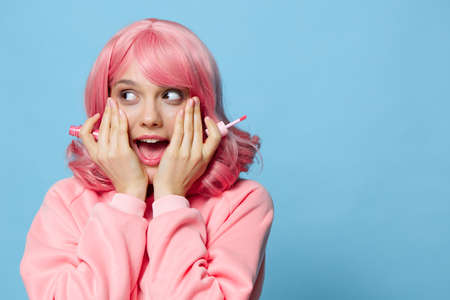 Beauty Fashion woman bright makeup pink hair glamor monochrome shot unaltered