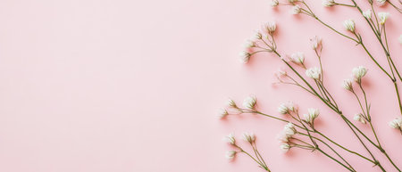 Soft white flowers are elegantly arranged on a light pink background creating a calming and minimalist aesthetic perfect for decoration.