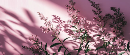 Pink Flowers with Delicate Shadows on Pink Background. Elegant pink flowers cast soft shadows against a monochromatic pink background, creating a tranquil and romantic mood.