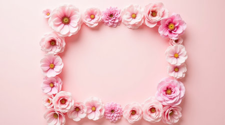 Floral frame of pink roses on soft pastel background, elegant decorative design