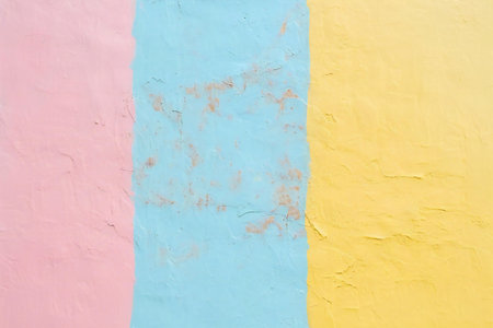 Colorful wall texture background. Yellow, blue and pink colors.