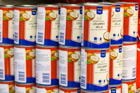 Coconut milk. Background with copy space for text. Illustrative editorial. December 18, 2021 Balti Moldova.