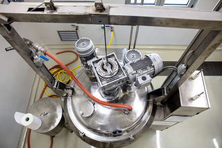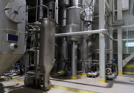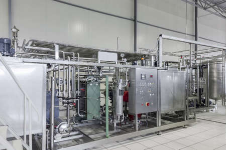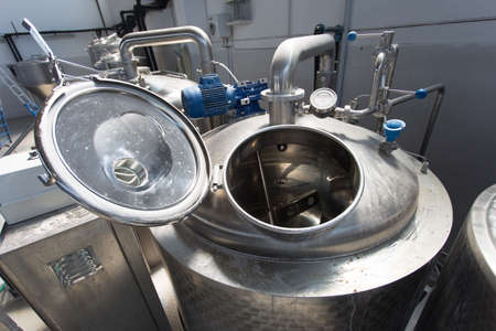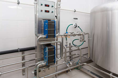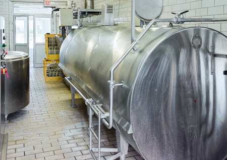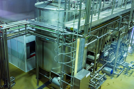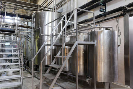 storage and pasteurization tank at the milk factory. equipment at the dairy plant