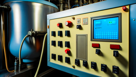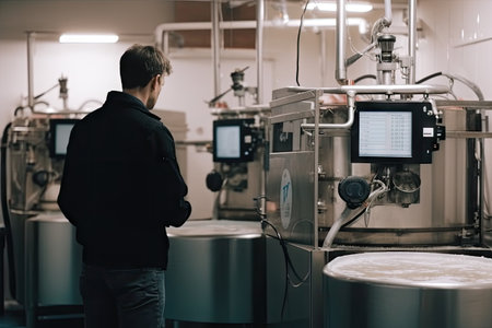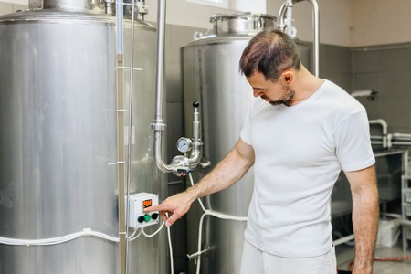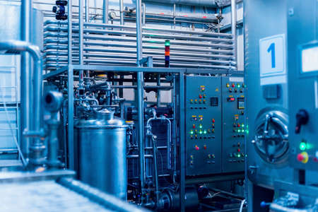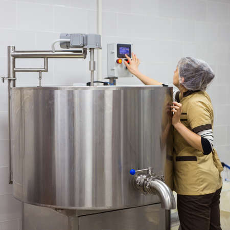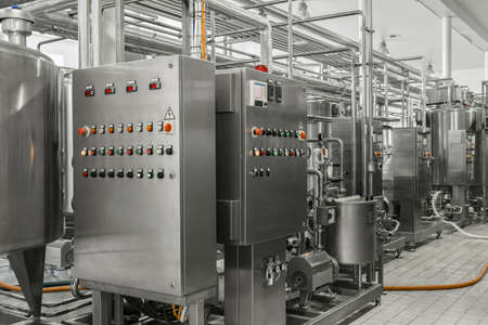 electronic control panel and tank at a milk factory. equipment at the dairy plant