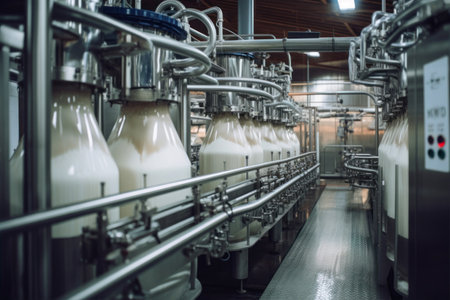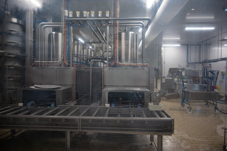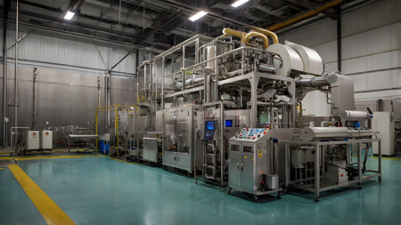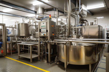 food production facility, with various machines and industrial equipment used to process food, created with generative ai