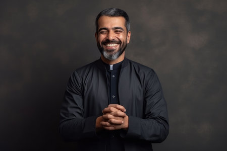 Portrait of priest with pray. Monk man oblation. Senior religion holy male with a confident expression