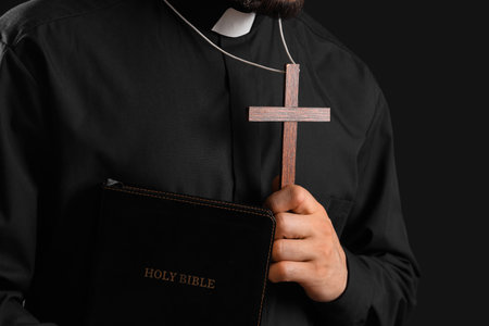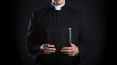 Portrait of a Young Black Priest Holding the Holy Bible in His Hand and Looking at the Camera. A Servant of God Helping Lost Souls Find the Path of Righteousness through Faith,