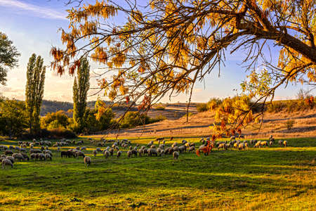 autumnal landscape with flock of sheep