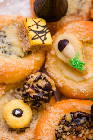 Bars cakes buns cookies background, Dessert, sweets for tea.