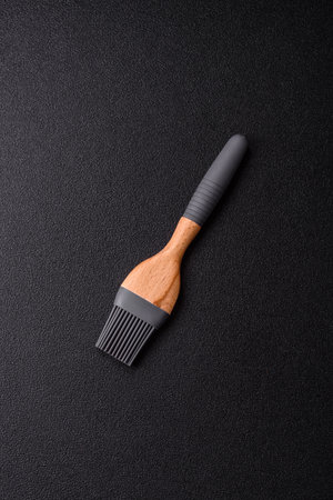Brush, silicone kitchen utensils for cooking and baking at home. Silicone brush as a background for your design