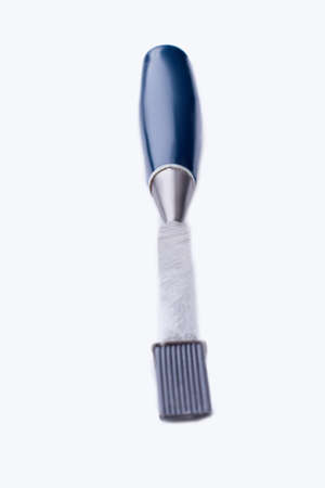 Blue plastic brush for smearing sunflower oil on a frying pan. A device for smearing oil.