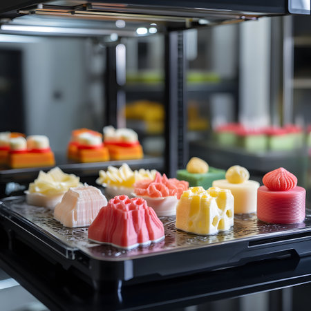 This captivating image features an elegant dessert arrangement showcasing delightful sweets with vibrant colors and intricate designs that highlight culinary artistry.