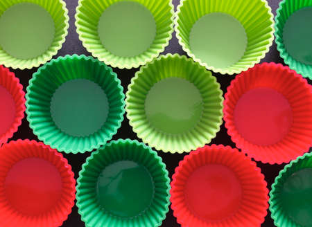 Silicone muffin moulds ready for use.