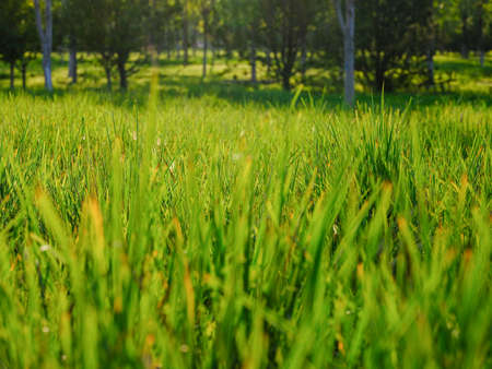 Long fresh green grass texture background view of grass garden Ideal concept used for making green flooring, lawn for training football pitch, Grass Golf Courses green lawn pattern textured background
