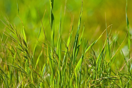 Green fresh grass macro background with bokeh, selective focus, shallow DOF