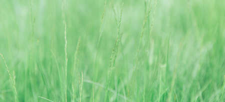 Green grass texture as background. Perspective view and selective focus. artistic abstract spring or summer background with fresh grass as banner or eco wallpaper. Leaves blur effect. Macro nature